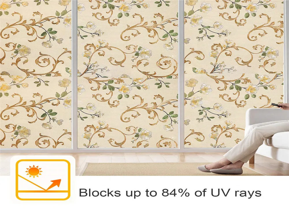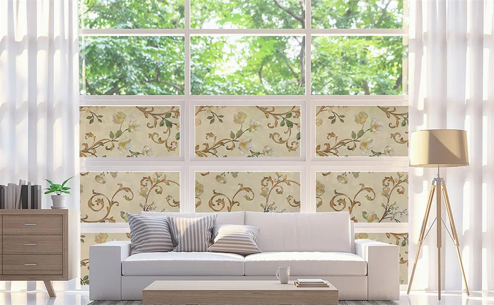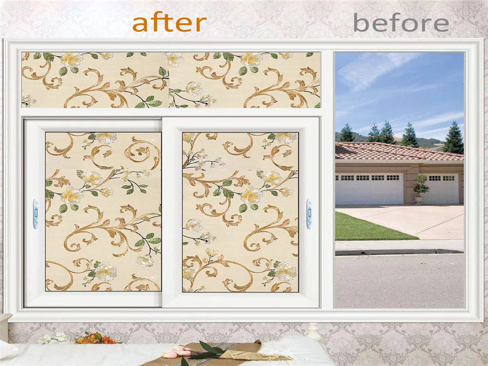 Widely used on office,lounge,bedroom,bathroom,sliding doors or windows. Replace traditional curtains with this elegant and beautiful window film.