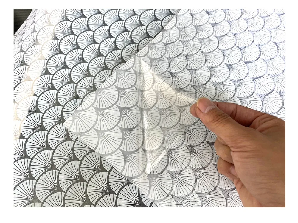 Film autocollant, qualité moyenne. Trop fin pour assurer une bonne pose. Les motifs sont esthétiques et le film rempli bien son rôle. Le fond est bien opaque comme sur la photo. Affaire à suivre dans le temps mais pour l’instant ça à l’air correct.
