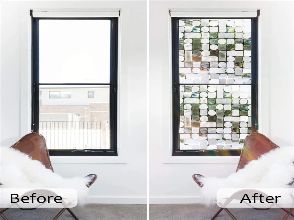 Static cling window film, easy to install and remove in minutes with no residue.